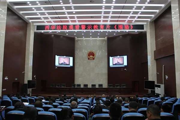 為把學(xué)習(xí)教育貫穿隊(duì)伍教育始終,在干警中開展警示教育、廉政教育,筑牢拒腐防變的思想防線,4月21日晚,西華法院組織全體干警觀看警示教育片《圍獵》。