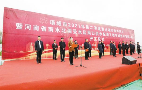 本報(bào)訊 (記者 楊光林)4月22日,項(xiàng)城市舉行2021年第二季度重點(diǎn)項(xiàng)目集中開工暨河南省南水北調(diào)受水區(qū)周口供水配套工程項(xiàng)城供水管道工程開工儀式。河南水利投資集團(tuán)有限公司董事長(zhǎng)王森、中州水務(wù)控股有限公司董事長(zhǎng)張南、河南省水利第二工程局局長(zhǎng)張國(guó)鋒、河南水建集團(tuán)有限公司總裁張華奇出席開工儀式,項(xiàng)城市委書記趙丹下達(dá)開工令,市長(zhǎng)王富生致辭,市領(lǐng)導(dǎo)張文成、劉體峰、王玉玲、張森、毛磊、徐興東、陳志、魏筠出席開工儀式。