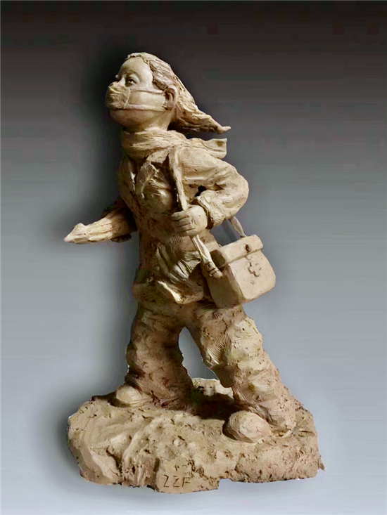 張振福創(chuàng)作的泥塑作品《白衣天使》入選云上展,并在社會(huì)上引起強(qiáng)烈反響?!栋滓绿焓埂繁憩F(xiàn)的是面對生死考驗(yàn),“最美醫(yī)護(hù)工作者”在萬家團(tuán)圓的時(shí)候,毅然決然馳援武漢的大愛風(fēng)采。張振福以大匠之法,用黃河泥刻畫出了與時(shí)間賽跑、與病毒決戰(zhàn)的白衣戰(zhàn)士,用泥塑表達(dá)對抗疫英雄的敬仰,展示了廣大醫(yī)護(hù)人員的醫(yī)者仁心、無私奉獻(xiàn)和中華兒女眾志成城、不畏艱險(xiǎn)的勵(lì)志精神。