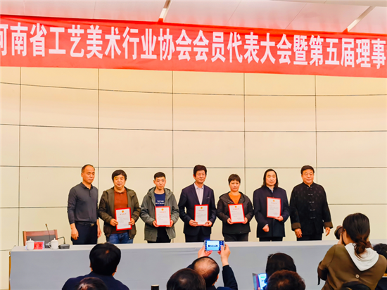在會(huì)上,河南省工藝美術(shù)行業(yè)協(xié)會(huì)會(huì)長孔紅生作了2020年河南省工藝美術(shù)行業(yè)協(xié)會(huì)工作報(bào)告,河南省工藝美術(shù)行業(yè)協(xié)會(huì)名譽(yù)會(huì)長張玉骉宣讀了張振福泥塑、王華平麥稈畫、游敏澄泥硯等藝術(shù)家作品入選抗擊新冠病毒肺炎疫情主題藝術(shù)作品云上展的表彰決定。