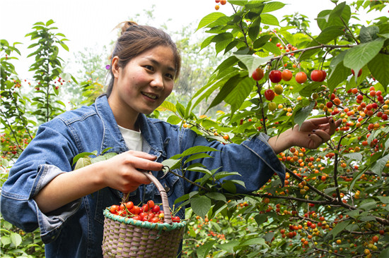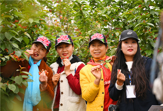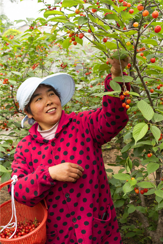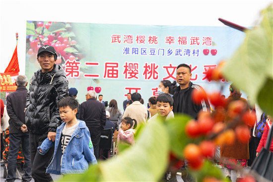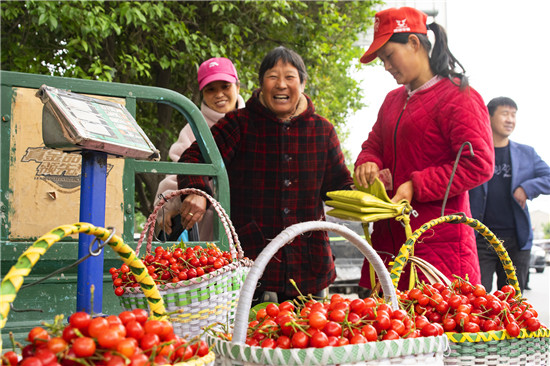 4月25日上午9時(shí),細(xì)雨蒙蒙的淮陽(yáng)區(qū)豆門鄉(xiāng)武灣村千畝櫻桃園開啟第二個(gè)采摘節(jié),為期半個(gè)多月。這個(gè)沙潁河灣里的小村莊,有數(shù)百年的櫻桃種植史,至今,村里依然存活著幾株年代久遠(yuǎn)的老根繁衍的櫻桃樹,并保持著旺盛的產(chǎn)果量。如今,沙潁河灣里的武灣村千畝櫻桃園一片緋紅,采摘的新鮮櫻桃,每斤賣10多元,果農(nóng)們迎來(lái)豐收節(jié)。③6