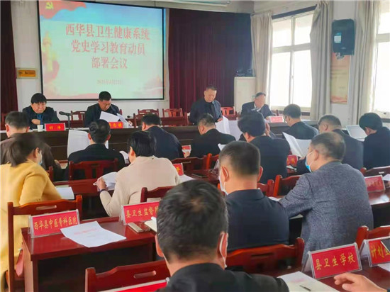 為深入學(xué)習(xí)貫徹習(xí)近平總書記在黨史學(xué)習(xí)教育動員大會上的重要講話精神,貫徹落實省、市、縣黨史學(xué)習(xí)教育動員大會精神。4月22日上午,西華縣衛(wèi)健委在五樓會議室召開“全縣衛(wèi)生健康系統(tǒng)黨史學(xué)習(xí)教育動員部署會議”,衛(wèi)健委全體班子成員,中層以上干部,各鄉(xiāng)鎮(zhèn)衛(wèi)生院院長、社區(qū)衛(wèi)生服務(wù)中心主任,縣直各衛(wèi)生健康單位負(fù)責(zé)人,各黨支部書記,各民營行業(yè)醫(yī)院院長參加會議。
