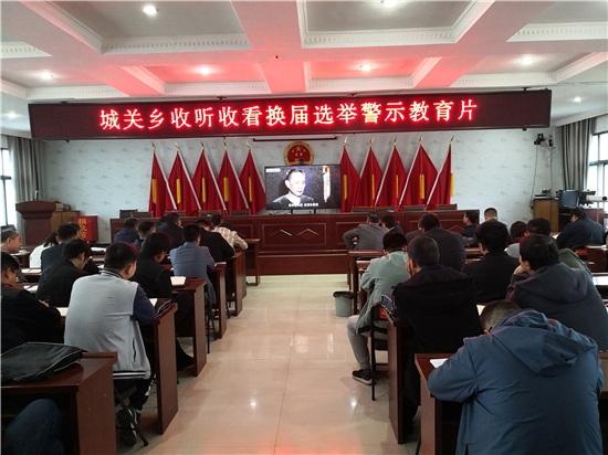 為切實樹好正確導(dǎo)向,選準干部,把班子配強,圓滿完成換屆工作,4月26日上午,商水縣城關(guān)鄉(xiāng)組織收看換屆選舉警示教育片。鄉(xiāng)黨委班子成員、脫貧責任組長、駐村第一書記、村黨支部書記及鄉(xiāng)機關(guān)全體人員集中收看了換屆選舉警示教育片。
