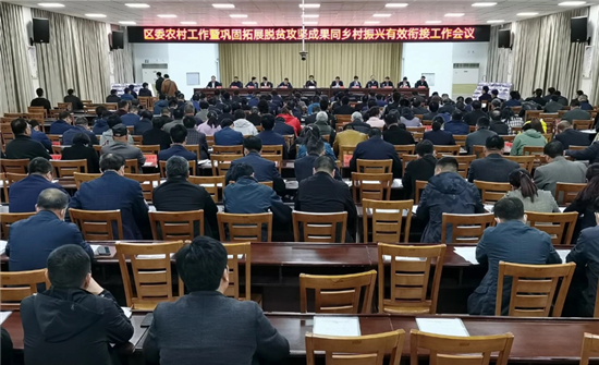 會議主要任務(wù)是認(rèn)真貫徹落實中央、省委、市委農(nóng)村工作會議和鞏固脫貧攻堅成果同鄉(xiāng)村振興有效銜接會議精神,總結(jié)安排全區(qū)農(nóng)業(yè)農(nóng)村和鞏固拓展脫貧攻堅成果同鄉(xiāng)村振興有效銜接工作,確保全區(qū)“三農(nóng)”工作高效率推進(jìn)、高質(zhì)量發(fā)展。