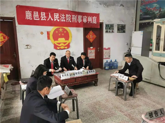 近日,鹿邑縣人民法院刑事審判庭法官分別到被告人張某某、王某某家中對其犯尋釁滋事、敲詐勒索一案進行公開審理。