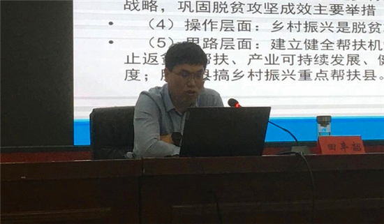 培訓(xùn)班由河南大學(xué)田豐韶教授主講,田豐韶是河南大學(xué)哲學(xué)與公共管理學(xué)院副院長(zhǎng),長(zhǎng)期從事減貧與發(fā)展、三農(nóng)工作領(lǐng)域等教學(xué)與研究工作。主持國(guó)家社科基金項(xiàng)目1項(xiàng),教育部、民政部、國(guó)家扶貧辦等省部級(jí)項(xiàng)目7項(xiàng),參與項(xiàng)目38項(xiàng)。出版專著1部,合著3本。承擔(dān)國(guó)務(wù)院扶貧辦委托課題習(xí)近平扶貧論述實(shí)踐案例研究、貧困縣摘帽案例研究(循化)、十八洞村精準(zhǔn)扶貧典型案例研究、“決勝全面小康:蘭考故事”等課題6項(xiàng),參與國(guó)務(wù)院扶貧辦及各地扶貧辦委托課題:“西藏脫貧攻堅(jiān)經(jīng)驗(yàn)總結(jié)”“蘭考精準(zhǔn)扶貧經(jīng)驗(yàn)總結(jié)”“西北區(qū)域縣、村脫貧攻堅(jiān)經(jīng)驗(yàn)總結(jié)6項(xiàng),研究報(bào)告及重大政策建議得到國(guó)家扶貧辦充分肯定。