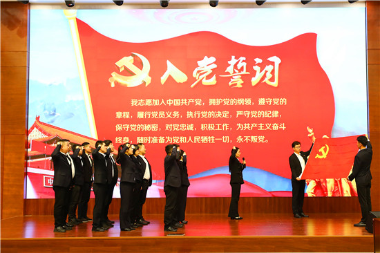 活動(dòng)中,公司青年人與歷史對(duì)話,2020屆新入職員工演繹舞臺(tái)劇《紅色的起點(diǎn)》,重現(xiàn)了百年前五四運(yùn)動(dòng)的激昂歷史;2021年優(yōu)秀青年員工培訓(xùn)班的30名青年共同唱響《少年》,抒發(fā)了“中國共產(chǎn)黨立志于中華民族千秋偉業(yè),百年恰是風(fēng)華正茂”的豪情。與“自己"對(duì)話,通過掃描大屏二維碼發(fā)起話題實(shí)現(xiàn)互動(dòng),20+、30+青年員工代表袁夢、田韋丹、麻奇朋現(xiàn)場深情發(fā)言,與40+勞模先進(jìn)代表肖杰夢幻聯(lián)動(dòng),暢談憧憬、解惑、期許,實(shí)現(xiàn)了信念、信心、信仰的傳承。與榜樣對(duì)話,解除自己在工作、生活方面的困惑和疑問,表示要對(duì)標(biāo)先進(jìn)學(xué)習(xí)榜樣,干一行,愛一行,精一行,只爭朝夕,不負(fù)韶華。最后,2020年加入黨組織的青年黨員上臺(tái)宣誓,以歌唱的形式重溫入黨誓詞。