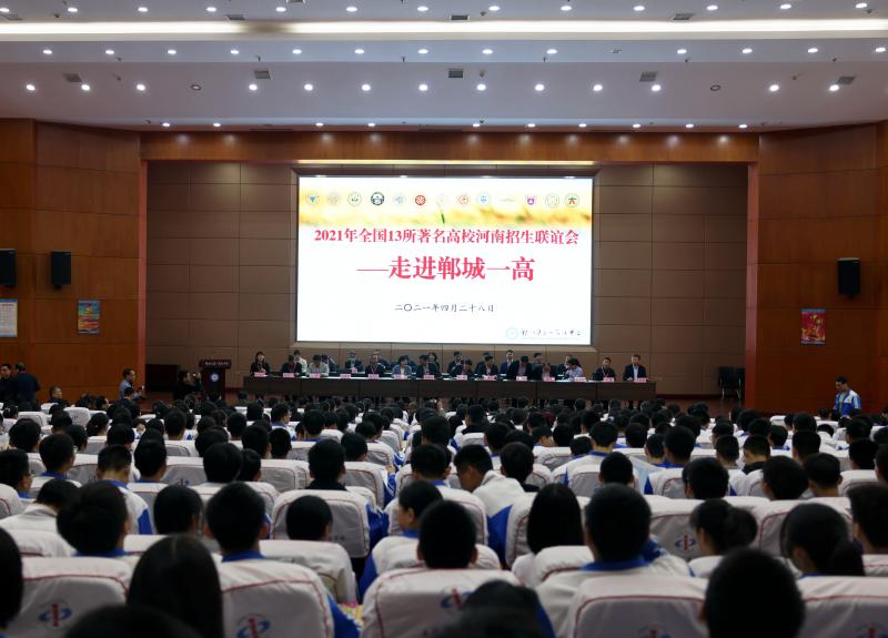 4月28日,2021年全國(guó)13所著名高校河南招生聯(lián)誼會(huì)在鄲城一高舉行。河南省招生聯(lián)誼會(huì)會(huì)長(zhǎng)單位代表、南開(kāi)大學(xué)副校長(zhǎng)王新生,河南省招生辦公室黨委書(shū)記、主任劉剛,市人大常委會(huì)副主任、鄲城縣委書(shū)記羅文閣,副市長(zhǎng)梁建松等出席會(huì)議并講話。鄭州大學(xué)招生辦公室主任徐麗麗主持聯(lián)誼會(huì),鄲城一高校長(zhǎng)劉成章致辭。