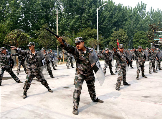 4月28日,河南省鹿邑縣人武部民兵訓(xùn)練基地,紅旗烈烈、迎風(fēng)招展?;擅癖y(tǒng)一著裝、軍容嚴(yán)整、精神抖擻、斗志昂揚(yáng),以實(shí)戰(zhàn)的姿態(tài)時(shí)刻準(zhǔn)備接受點(diǎn)驗(yàn)。