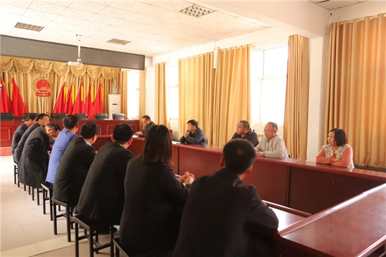 固墻鎮(zhèn)黨委書記徐汝濤對各位作家前來采風(fēng)、調(diào)研表示歡迎。徐汝濤向采風(fēng)團(tuán)介紹了固墻鎮(zhèn)的歷史和發(fā)展?fàn)顩r,對固墻法庭參與社會治理進(jìn)行的探索和嘗試給予肯定,對取得的效果給予高度評價。
