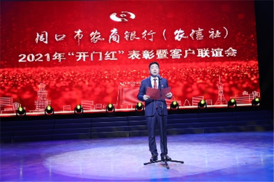當(dāng)晚7時(shí),隨著一曲開(kāi)場(chǎng)舞《我們的祖國(guó)歌甜花香》的表演,周口市農(nóng)商銀行(農(nóng)信社)“開(kāi)門(mén)紅”總結(jié)表彰暨客戶聯(lián)誼晚會(huì)正式拉開(kāi)序幕。