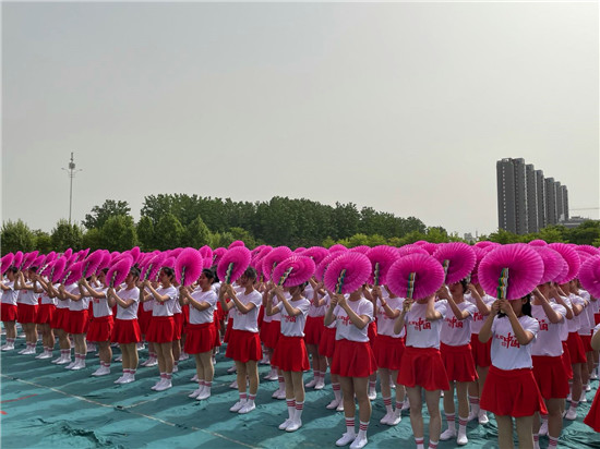 開幕式還舉行了彩扇舞、啦啦操、中國(guó)功夫、歌曲等文體表演。其中,彩扇舞《盛世花開》,由該校文化教育學(xué)院300名女生手持彩扇,跟隨著不同的音樂節(jié)奏變換著不同的色彩與隊(duì)形,依次拼出由鐮刀和錘頭組成的中國(guó)共產(chǎn)黨黨徽、象征體育精神的奧運(yùn)五環(huán)、“慶祝建黨100周年”、“周職20周年校慶”等圖形和字樣,表達(dá)著對(duì)黨的熱愛和對(duì)學(xué)校的祝福。表演者王真真說:“大家協(xié)同配合才能把節(jié)目表演好,這個(gè)節(jié)目我們排練了一個(gè)多月。雖然很辛苦,但是看到節(jié)目順利演出,感到很有成就感?!?/p>