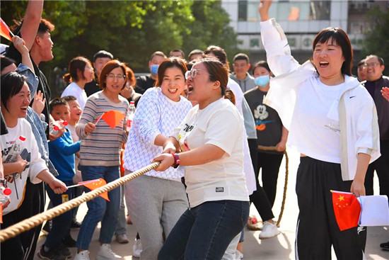 經(jīng)過激烈角逐賽,行管后勤隊包攬了蒙眼擊鼓、二人三足、拔河比賽三項比賽的男隊一等獎;內(nèi)科女隊獲得拔河比賽一等獎;內(nèi)科隊獲得十人跳繩一等獎。拔河比賽是本次運動會上最吸引人、最激動人心的環(huán)節(jié),參賽人員團(tuán)結(jié)協(xié)作、頑強(qiáng)拼搏的運動精神感染了在場每一個人,場邊觀眾們加油吶喊聲、歡呼聲此起彼伏,賽場內(nèi)外始終洋溢著團(tuán)結(jié)、和諧、拼搏的良好氛圍。