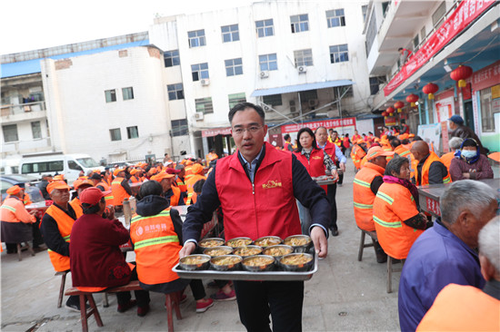 當(dāng)日早上6時,鄧昌鋒與志愿者早早趕到“愛心粥屋”服務(wù)站,一到粥屋便主動加入到忙碌的服務(wù)中。鄧昌鋒帶頭給環(huán)衛(wèi)工盛粥、分發(fā)饅頭、端菜,志愿者一個個忙得不亦樂乎。待環(huán)衛(wèi)工人用餐完畢,鄧昌鋒與志愿者一起清掃地面、整理桌椅,及時將碗筷清洗干凈。大家雖然有些勞累,但每個人的心里都充滿了愉悅感和幸福感?!皼]想到,縣委統(tǒng)戰(zhàn)部給俺送來愛心物資,還請了歌手給我們唱歌,聽著心里暖暖的!”年過六旬的李大嬸吃著飯感謝的話說個不停。
