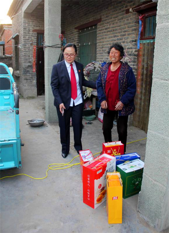 楊宏亞考慮到原告一家家庭貧困、生活困難,特意自費(fèi)買(mǎi)來(lái)生活用品并貼心地送到郭某家中,鼓勵(lì)郭某全家勇敢面對(duì)眼前的困難,積極樂(lè)觀(guān)生活。楊宏亞一行親切的問(wèn)候、溫暖的祝福,使郭某一家人深受感動(dòng)。郭某表示,有人民法官的幫助,什么都不害怕,再苦再難也要堅(jiān)持下去。
