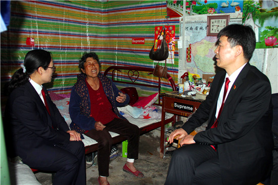在郭某訴張某等交通事故糾紛一案中,原告郭某家人都是重度殘疾,郭某本人也在交通事故中受重傷,行動(dòng)不便,全家陷入困境。為減輕困難群眾的訴累,讓傷者早日得到賠償款,本著“寧可法官多走路,不讓群眾多跑腿”的原則,扶溝法院黨組成員、副院長(zhǎng)楊宏亞帶領(lǐng)范娜娜庭長(zhǎng)來(lái)到原告郭某家中看望,并組織該案保險(xiǎn)公司的代理人和事故車(chē)主來(lái)到原告郭某家中調(diào)解。