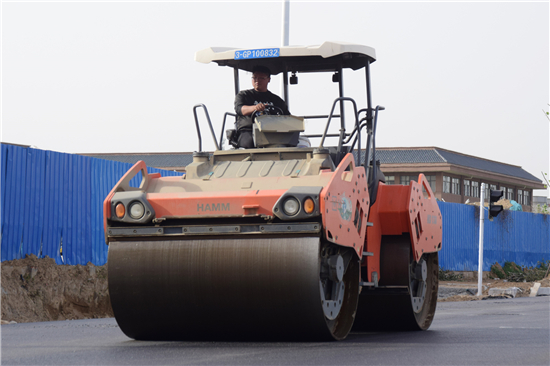 西側(cè)的非機(jī)動車道正在最后的柏油鋪設(shè)