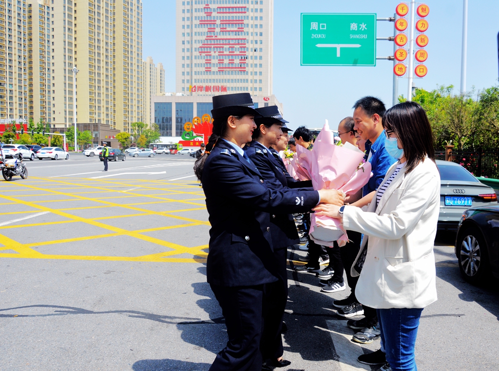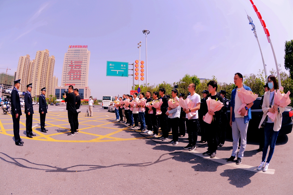 5月1日下午,商水縣公安局15名公安民警輔警奔赴五個省份抓捕涉嫌詐騙嫌疑犯平安歸來,縣公安局在周口高速口舉行歡迎儀式,迎接抓捕組凱旋的勇士??h政府黨組成員、公安局長王之棟,縣公安局政委張俊華參加了歡迎儀式。