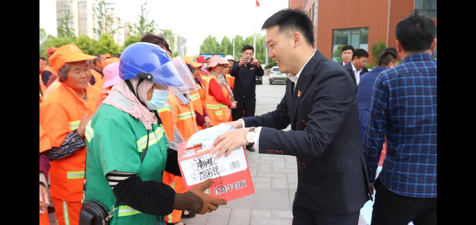 為表達(dá)對(duì)一線環(huán)衛(wèi)工人的關(guān)懷,致敬城市美容師,4月29日,中原眾恒集團(tuán)在道琚酒店組織開(kāi)展五一勞動(dòng)節(jié)慰問(wèn)環(huán)衛(wèi)工人公益活動(dòng)。市城鄉(xiāng)一體化示范區(qū)綜合執(zhí)法中心副主任張英、王東方,中原眾恒集團(tuán)董事長(zhǎng)王文濤,副總經(jīng)理謝華、張輝,道琚酒店總經(jīng)理李陽(yáng)及示范區(qū)100余名環(huán)衛(wèi)工人參加活動(dòng)。