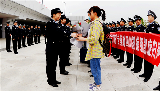 5月3日,一場中雨酣暢淋漓,為各地游客帶來清爽。16時10分,暴雨剛停,在周口東高鐵站,商水縣公安局舉行歡迎儀式,迎接該局“306”專案赴四川抓捕組凱旋。縣政府黨組成員、公安局局長王之棟,政委張俊華帶領(lǐng)縣公安局全體黨委班子成員、機關(guān)警種負(fù)責(zé)人等百余名民警和市民迎接勇士們凱旋歸來。