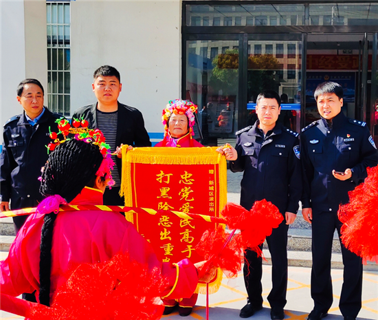 “忠黨愛民高于天,掃黑除惡出重拳。感謝你們神速破案,你們真是群眾的保護(hù)神。”5月1日,鄲城縣新城街道辦事處一電動(dòng)車失主來(lái)到新城派出所,送來(lái)錦旗,感激地說(shuō)。