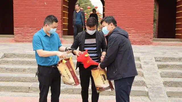 太昊陵景區(qū)工作人員得知李玉強(qiáng)等人是來自洛陽的游客后,立刻幫助他們在手機(jī)上預(yù)約免費(fèi)門票,并帶領(lǐng)他們在景區(qū)游玩,并贈送了泥泥狗、布老虎等紀(jì)念品。