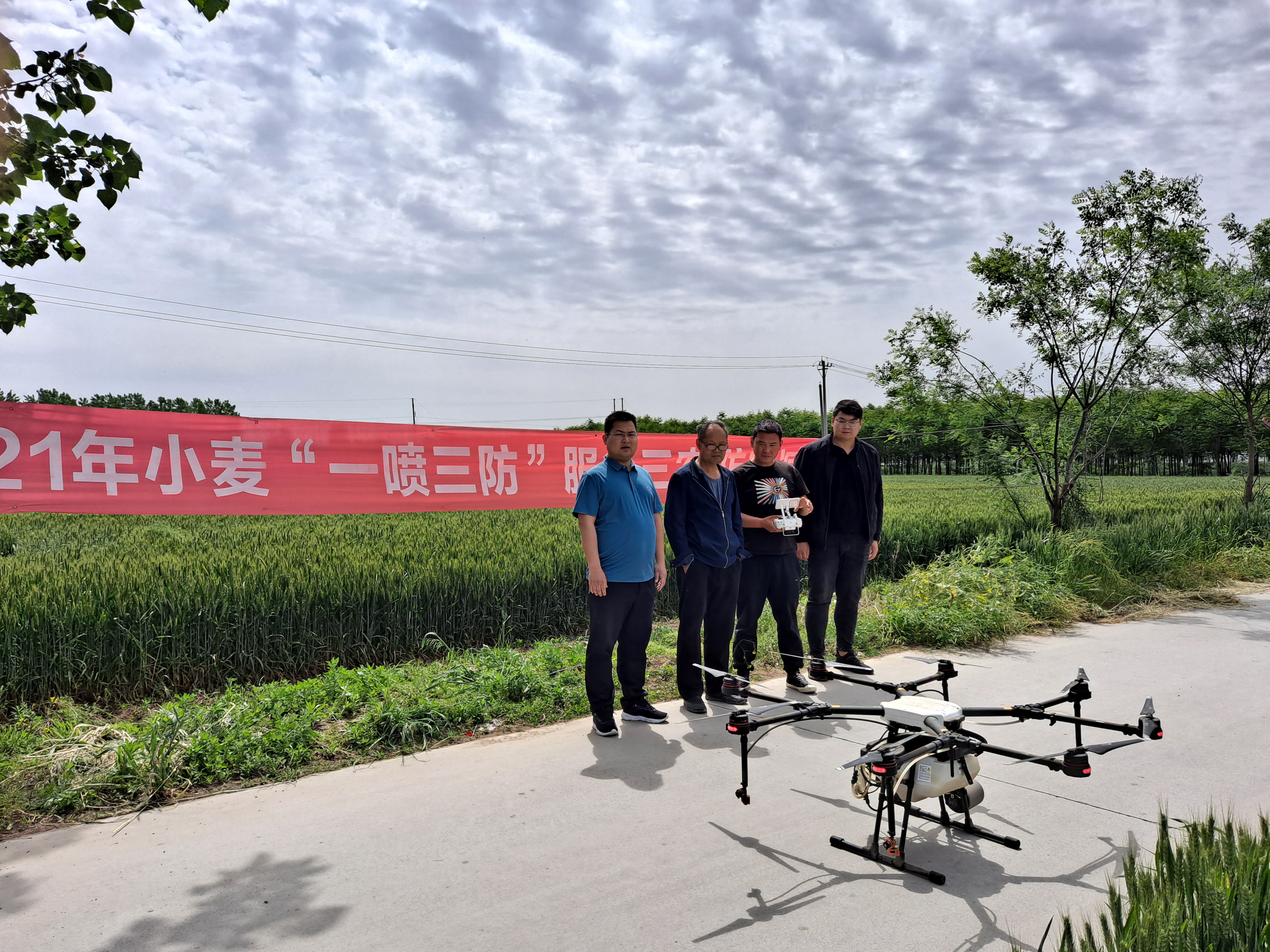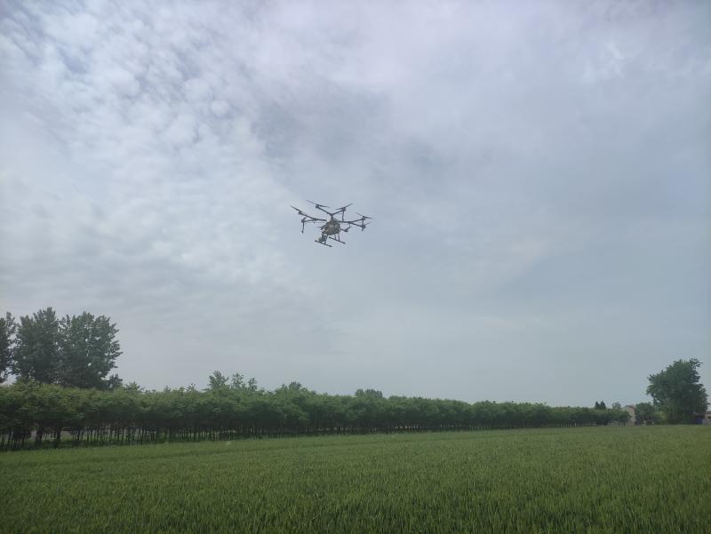 無人機(jī)植??蓪?shí)現(xiàn)農(nóng)藥自動(dòng)定量、精準(zhǔn)控制、低量噴灑,增加農(nóng)藥對農(nóng)作物的穿透性,農(nóng)藥使用效率大幅提升,同時(shí)也減少了農(nóng)藥對土壤和環(huán)境的污染,有效實(shí)現(xiàn)“雙降” 。公司工作人員與項(xiàng)城市農(nóng)業(yè)農(nóng)村局植保站經(jīng)過協(xié)調(diào)溝通,調(diào)用了無人機(jī)進(jìn)行補(bǔ)噴,助力該合作社2021 年小麥“一噴三防”全面覆蓋工作完成。此舉得到了鄉(xiāng)鎮(zhèn)政府和種植戶一致好評。