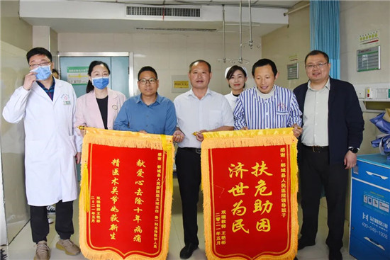 為表謝意,王艷彬特意請(qǐng)書法家寫了兩幅書法作品,一幅送給高延征教授,上書:兩只起死回生手,一顆安民濟(jì)世心;另一幅送給鄲城縣人民醫(yī)院,上書:人民醫(yī)院為人民,沉疴痼疾一刀除。此外,他訂制了兩面錦旗,一面贈(zèng)予鄲城縣人民醫(yī)院領(lǐng)導(dǎo)班子,上寫:扶危助困,濟(jì)世為民;一面贈(zèng)予鄲城縣人民醫(yī)院骨科一病區(qū)全體醫(yī)護(hù)人員,上寫:獻(xiàn)愛心去除十年病痛,精醫(yī)術(shù)關(guān)節(jié)如獲新生。