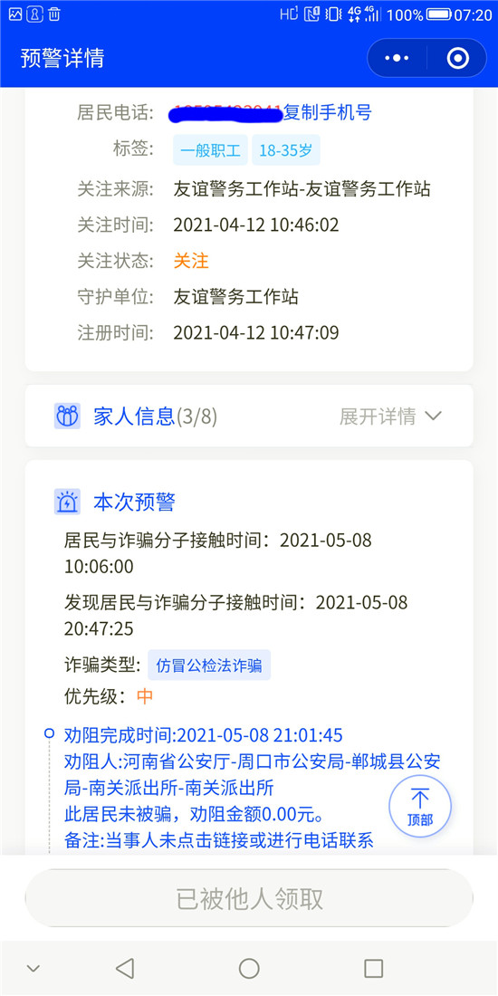 5月8日,鄲城縣公安局南關(guān)派出所社區(qū)民警收到“金鐘罩”推送的反詐預(yù)警信息,轄區(qū)居民郭某有受騙風(fēng)險,社區(qū)民警第一時間聯(lián)系郭某核實(shí)了解相關(guān)情況并及時予以制止。