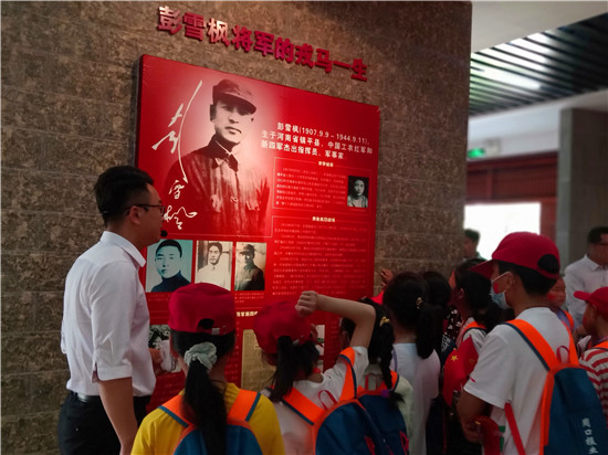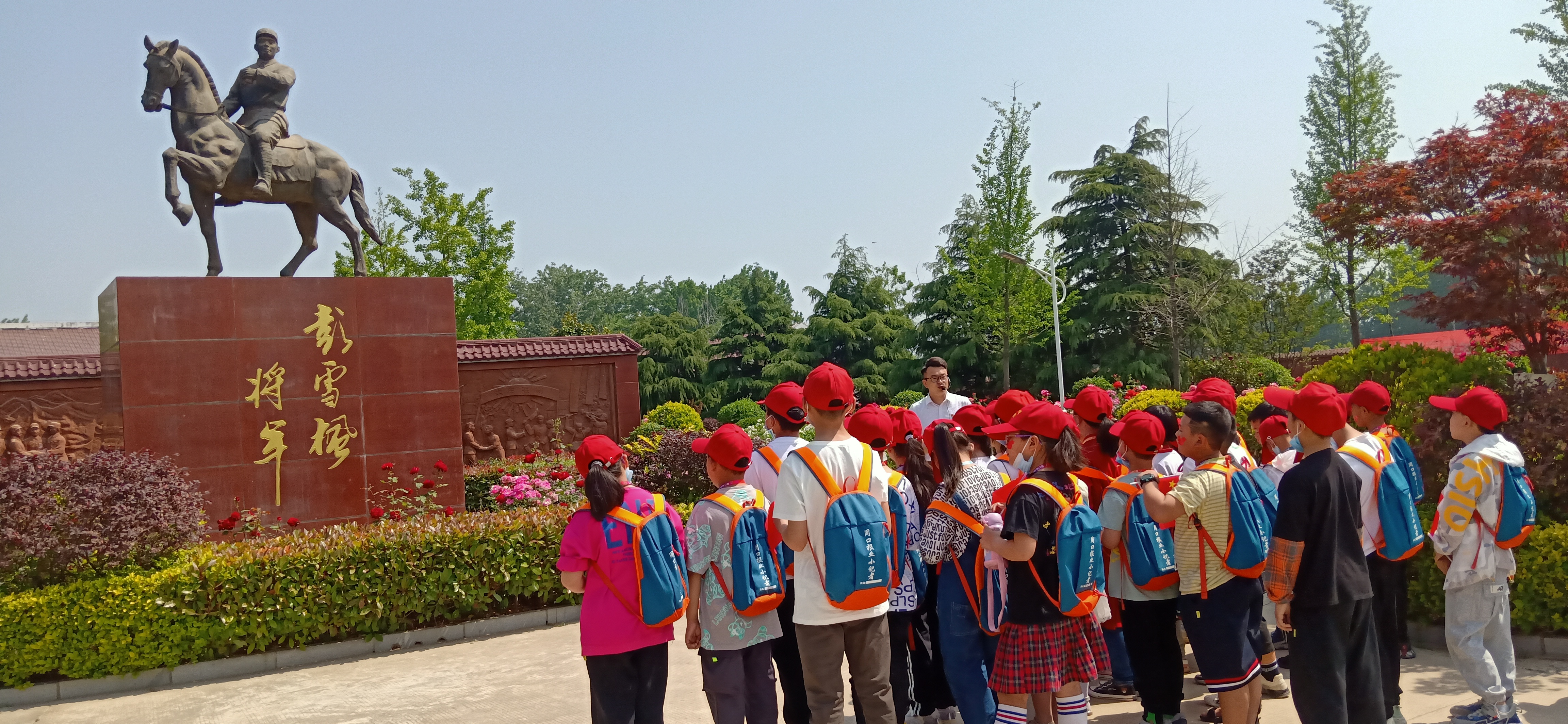 在短暫路途中,小記者們早已經按耐不住期待的心情,總感覺4公里的路程相當遙遠。10多分鐘行程后,車輛到達目的地。此時,杜崗會師紀念館看上去莊嚴寧靜,彭雪楓將軍躍馬馳騁的塑像高大威武,舉目可見,一種仰慕之情頓時令人油然而生。