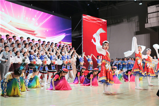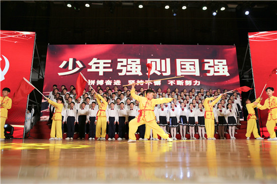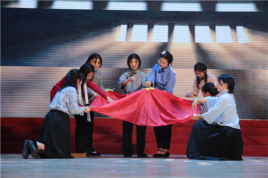 《百年紅船》大氣磅礴,展現(xiàn)了“崢嶸歲月、風(fēng)雨兼程,敢闖敢領(lǐng)、百折不撓”的歷史畫(huà)卷;《千里躍進(jìn)大別山》將誦讀與雜技融合,講述了解放戰(zhàn)爭(zhēng)中這一個(gè)偉大轉(zhuǎn)折的波瀾壯闊;《愛(ài)國(guó)三問(wèn)》振聾發(fā)聵,激發(fā)了大家為實(shí)現(xiàn)中華民族偉大復(fù)興作出新貢獻(xiàn)的熱情;《繡紅旗》催人淚下,演繹了革命烈士為了新中國(guó)成立出生入死,前赴后繼的斗爭(zhēng)精神;《青春中國(guó)》《頌百年芳華、奏強(qiáng)國(guó)樂(lè)章》《獻(xiàn)給黨的贊歌》等,高亢激昂的誦讀聲和歌聲,青春洋溢的優(yōu)雅舞姿,抒發(fā)著廣大青少年對(duì)偉大祖國(guó)和中國(guó)共產(chǎn)黨的無(wú)比熱愛(ài)之情,精彩的演出贏得場(chǎng)下觀眾陣陣掌聲。
