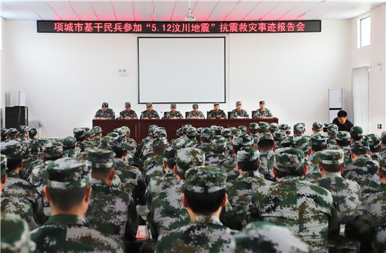 5月12日,是汶川地震13周年紀(jì)念日。正在參加訓(xùn)練的項(xiàng)城市200名基干民兵中,共有10位同志曾經(jīng)以救災(zāi)戰(zhàn)士的身份親歷過那場地震。為激勵(lì)廣大參訓(xùn)民兵,緬懷那場地震中的死難者,項(xiàng)城市在民兵訓(xùn)練基地組織了一場特殊的報(bào)告會(huì)——"老兵抗震救災(zāi)先進(jìn)事跡報(bào)告會(huì)"。