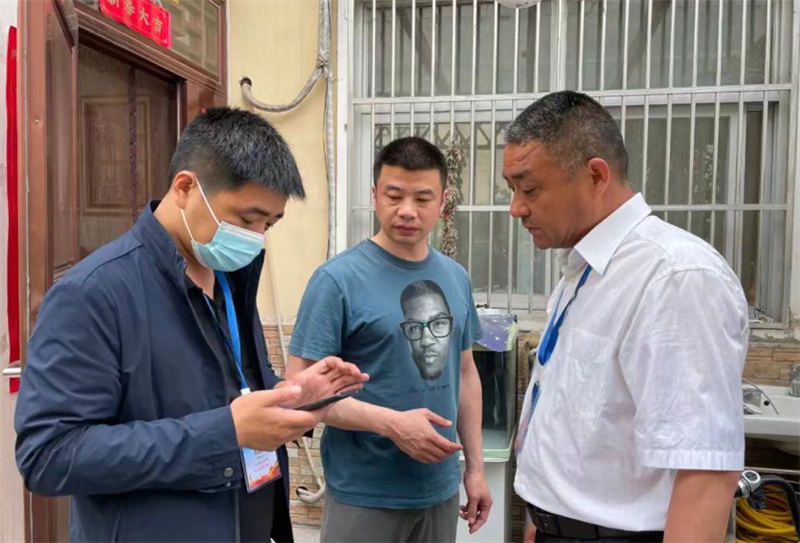 圖為川匯區(qū)人大常委會機(jī)關(guān)人員在推廣介紹“金鐘罩”反詐騙小程序