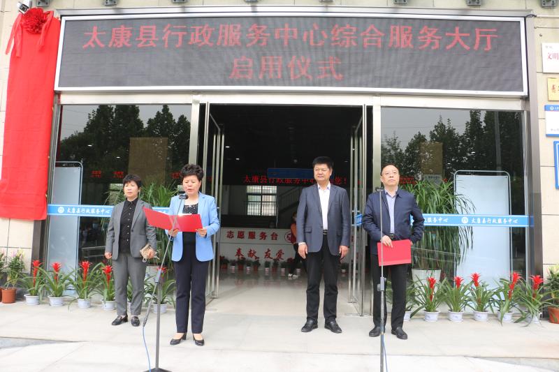 5月7日上午,太康縣行政服務(wù)中心綜合服務(wù)大廳啟用儀式在行政服務(wù)中心新址舉行??h委常委、常務(wù)副縣長(zhǎng)張雪芳,縣人大常委會(huì)副主任宋文中,縣政協(xié)副主席劉鳳芹,縣政府辦主任程勇,縣直相關(guān)單位負(fù)責(zé)人及單位窗口全體工作人員參加啟用儀式。儀式上,縣委常委、常務(wù)副縣長(zhǎng)張雪芳代表縣委、縣政府對(duì)新綜合服務(wù)大廳的啟用表示祝賀。 張雪芳、宋文中、劉鳳芹共同為“太康縣行政服務(wù)中心綜合服務(wù)大廳”揭牌??h政府辦公室副主任、縣行政服務(wù)中心主任仝曉峰就服務(wù)中心的基本情況進(jìn)行了介紹。