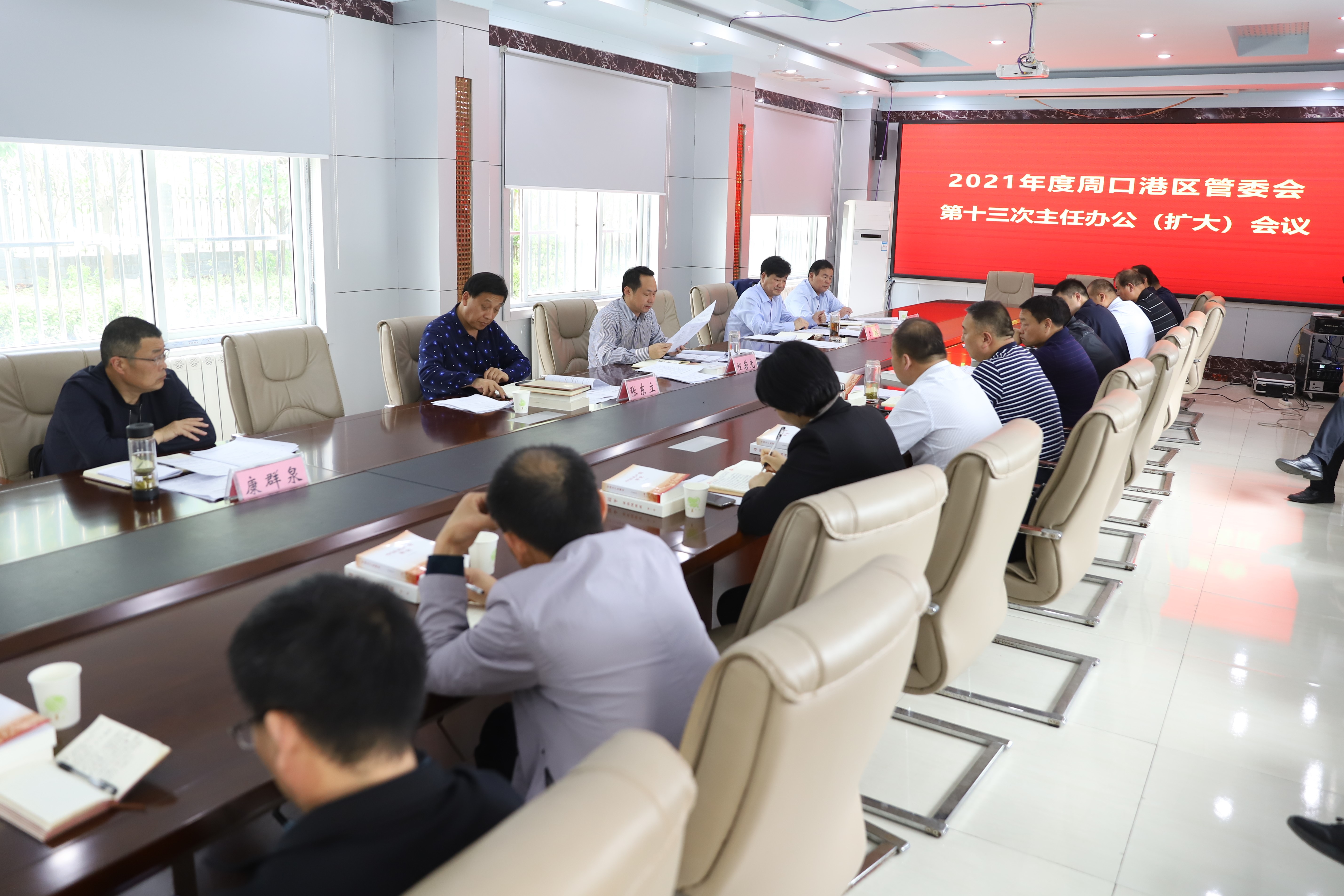 5月19日,周口港區(qū)管委會主任程若光主持召開2021年第十三次主任辦公會,集中學(xué)習(xí)黨史和黨的理論知識,研究部署港區(qū)近期重點工作。港區(qū)領(lǐng)導(dǎo)張東立、李翔、劉學(xué)慶、康群泉出席會議。