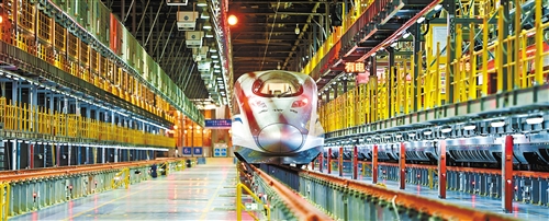 鄭州南動車所對標準組動車進行檢修。近年來,高鐵新線的陸續(xù)開通,為鄭州逐步建設(shè)成國際性綜合交通樞紐提供了強勁動力。 王 錚攝(中經(jīng)視覺)