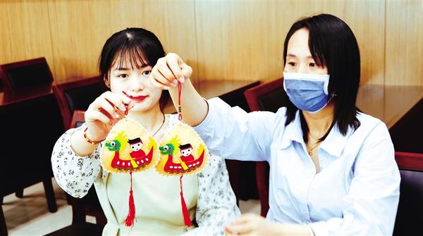 6月20日,市城鄉(xiāng)一體化示范區(qū)工作人員展示做好的香囊。當(dāng)日,市城鄉(xiāng)一體化示范區(qū)開展“聞香過端陽 仲夏戴香囊”文明實(shí)踐主題活動,從拼龍舟、縫香囊、畫團(tuán)扇、DIY粽子等一系列活動來沉浸式體驗(yàn)優(yōu)秀傳統(tǒng)手工藝文化。