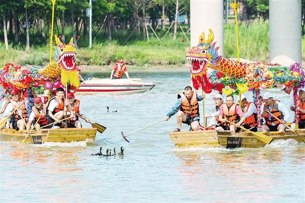 6月20日上午,周口市第八屆中華龍舟賽激烈進(jìn)行中。當(dāng)日,河南省第十一屆中華軒轅龍舟大賽暨周口市第八屆中華龍舟賽在周口市水上運(yùn)動中心開賽。賽前,水上拔河、翎船捕鴨等傳統(tǒng)表演讓觀眾大飽眼福。