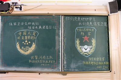 “保家衛(wèi)國交給我們,祖國未來更看你們!”“你們負責好好學習,我們負責保家衛(wèi)國!”在鄭州市第七十三中學的一間教室里,參與救災援助的抗洪官兵們給同學們留下了兩幅黑板報。在師生們眼里,這就是名副其實的“最美黑板報”。