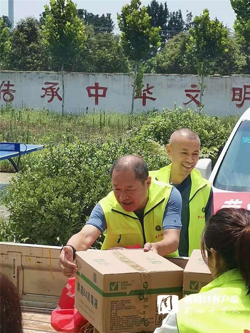 時刻關(guān)注受災群眾動態(tài)的周口螢火蟲公益組織得知這一情況后,于7月30日上午再次奔赴西華縣紅花鎮(zhèn),為即將返家的王橋行政村村民送去呋喃西林粉、蚊蟲叮咬液、消毒凝膠、口罩、84消毒液等價值兩萬余元的消殺物資?!班l(xiāng)親們今天回家,這些東西正好用得著。謝謝你們!”王橋行政村村干部和富平代表村民向周口螢火蟲公益表示感謝。