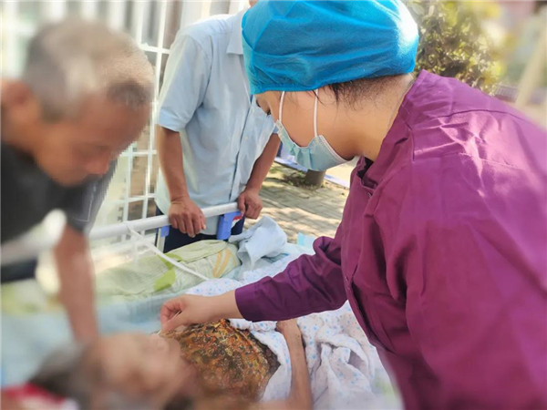 接到派單后,心血管二病區(qū)護士長孫娜第一時間與患者家屬取得聯系,得知這位近百歲的老人是在凌晨一點多自行把胃管拔了出來,早晨還沒有進食,于是帶著護士陳珍珍第一時間趕往了患者家里。還未下車,她們就看到患者家屬在門口著急地張望:“怎么這么快,太好了,我的老母親不用餓肚子了?!?/p>