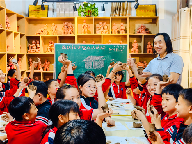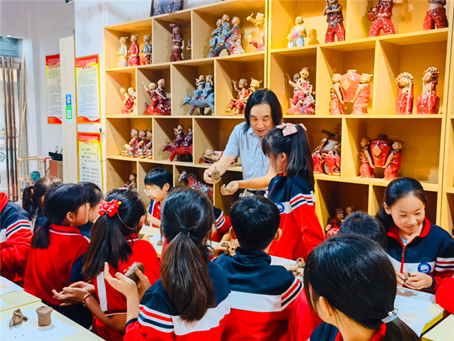 中小學(xué)生國(guó)慶節(jié)弘揚(yáng)非遺文化 學(xué)習(xí)張振福泥塑鈞瓷技法