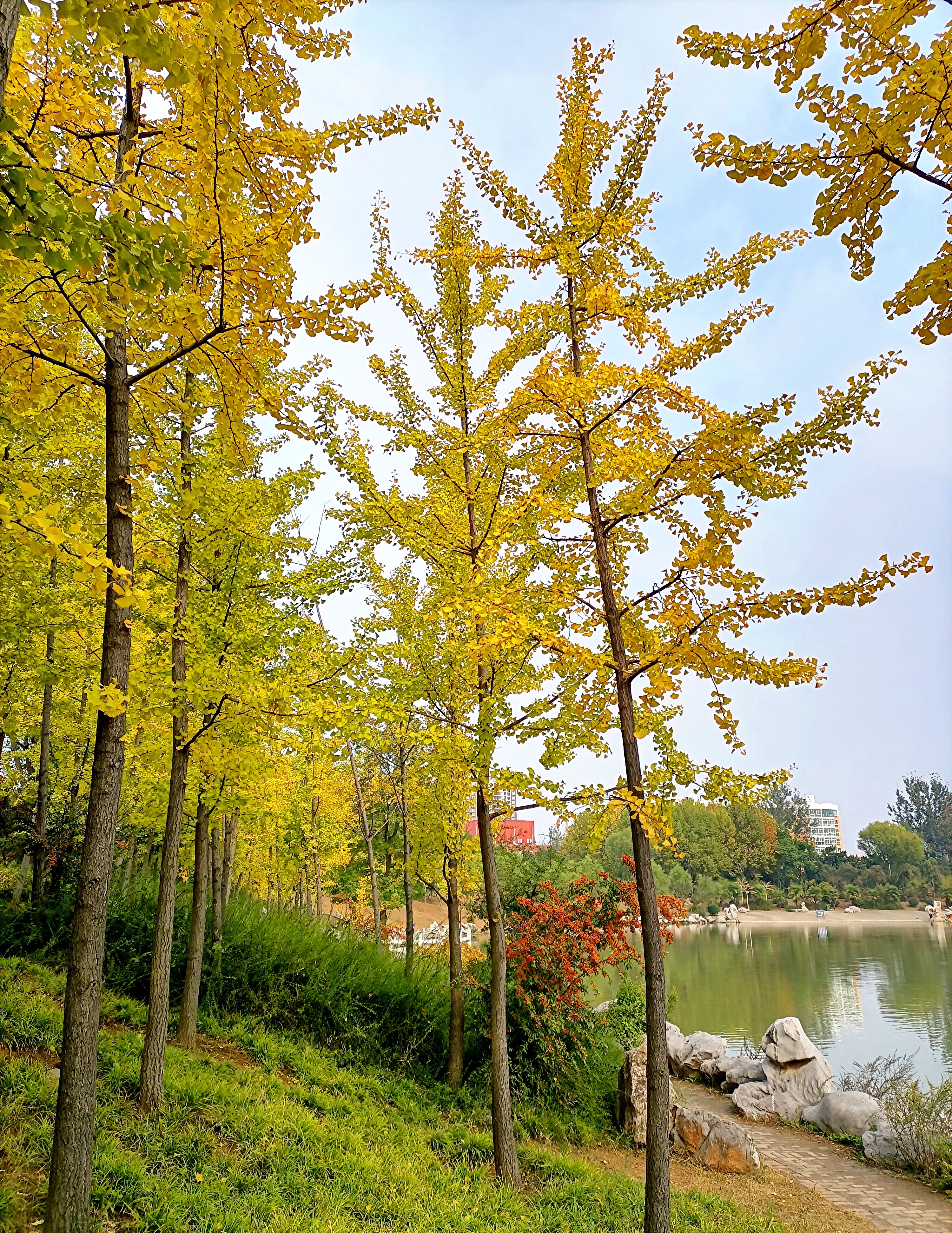 天氣漸涼,綠葉漸黃。近日,我市中心城區(qū)各種樹木漸漸披上了金黃色的“秋日盛裝”,比如道路兩旁的金絲槐樹、周口公園的銀杏樹等。漸漸變黃的葉子呈現(xiàn)出一種別樣的美感。