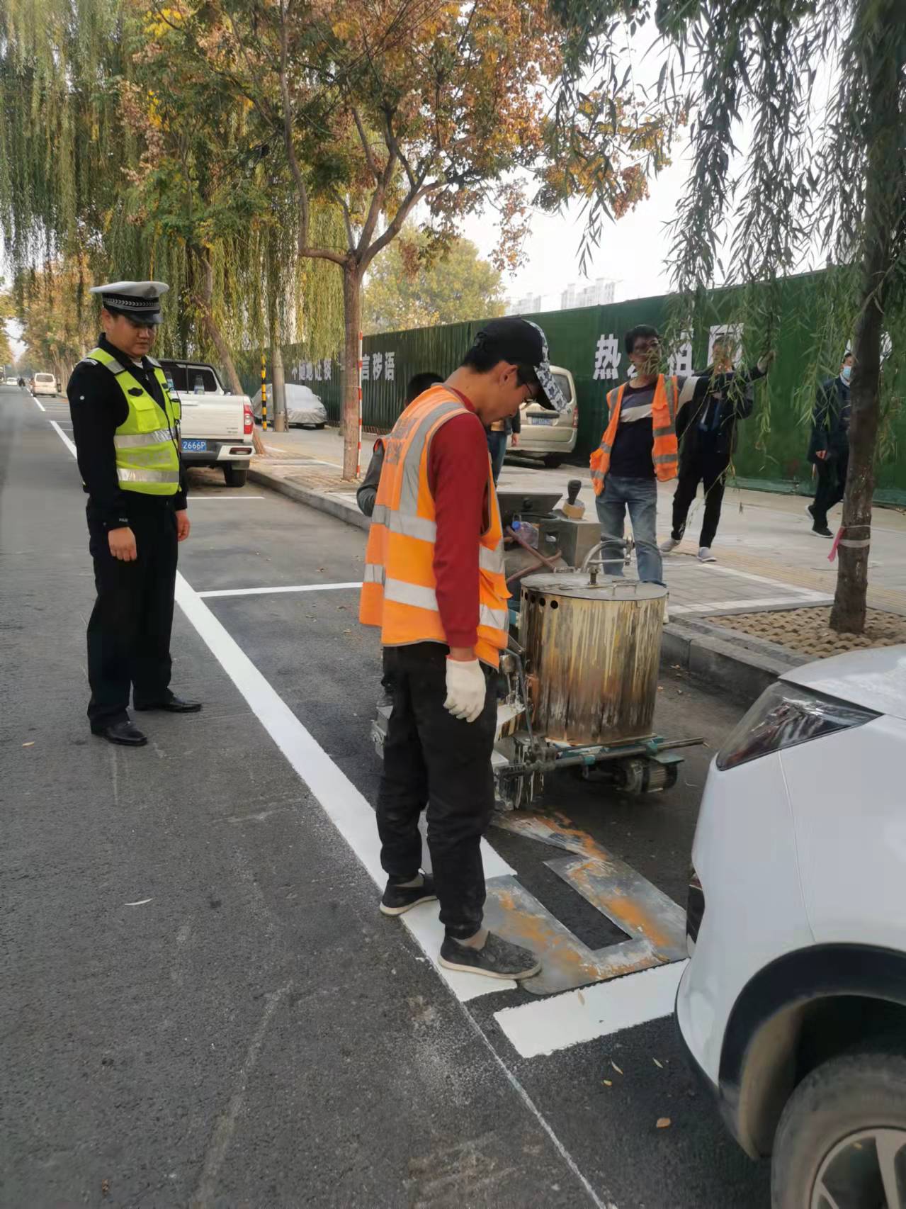 當日下午,記者在黃河路看到,施工人員正在熟練地操作標線機,認真細致地施劃減速震蕩標線。市公安局交通管理支隊設(shè)施維護中心(以下簡稱設(shè)施維護中心)工作人員黃勇說:“在創(chuàng)文期間,設(shè)施維護中心加大對道路護欄的清洗力度,完善交通信號燈的維護,清除學(xué)校門口不合理的停車位,修剪遮擋交通設(shè)施的樹枝,排除路口的交通隱患?!?/p>