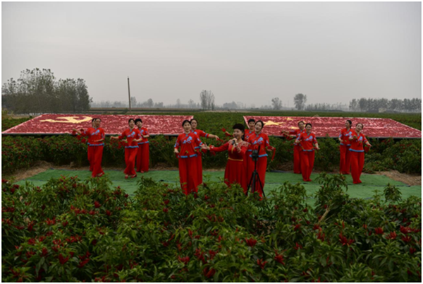 歡快的腰鼓敲起來、激昂的紅歌唱起來、火紅的辣椒串起來……寒冬時節(jié),走進革命老區(qū)西華縣艾崗鄉(xiāng),一股股獨具地方特色的文化氣息撲面而來。