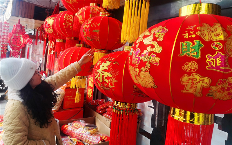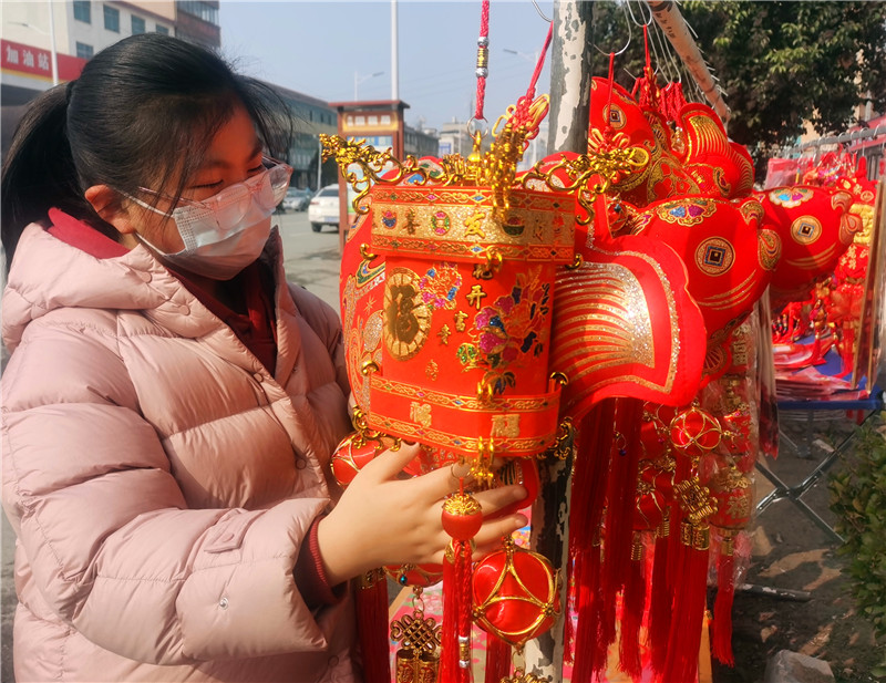 1月27日,市民在認(rèn)真挑選著新年的裝飾品。春節(jié)臨近,虎年生肖飾品、對(duì)聯(lián)、中國(guó)結(jié)、福字、大紅燈籠等“紅色年貨”火了年貨市場(chǎng)。據(jù)了解,各種寓意祥和的春聯(lián)、以老虎為主題的各種窗花、各種飾品最受市民歡迎。③10