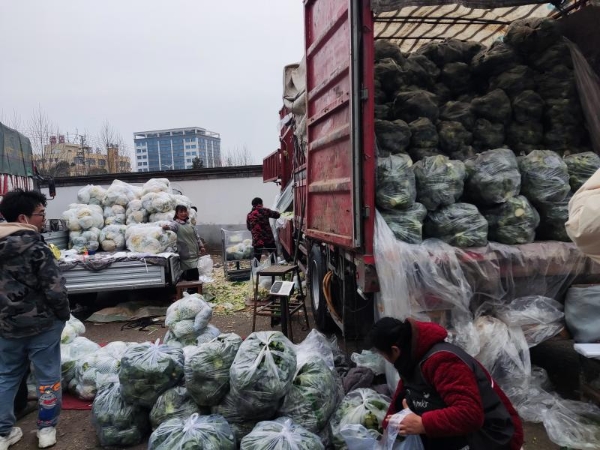 在市場入口,一輛輛載著各類商品的大貨車正排著隊往里進,測溫、驗證、登記、抽檢,進入市場后,幾輛三輪車迅速圍上,開始卸貨,一切都有條不紊?!斑@一車大蔥是市里十幾家飯店要的?!睆垘煾颠呅敦涍呎f,“過年有不少大飯店正常營業(yè),現(xiàn)在就開始備貨了?!碑?dāng)被問及現(xiàn)在和平常有什么不一樣時,張師傅略顯疲憊的臉上露出了笑容,“肯定不一樣,平常兩天來一次,現(xiàn)在一天一次,一年到頭就現(xiàn)在最忙,辛苦幾天,掙錢過個好年”。