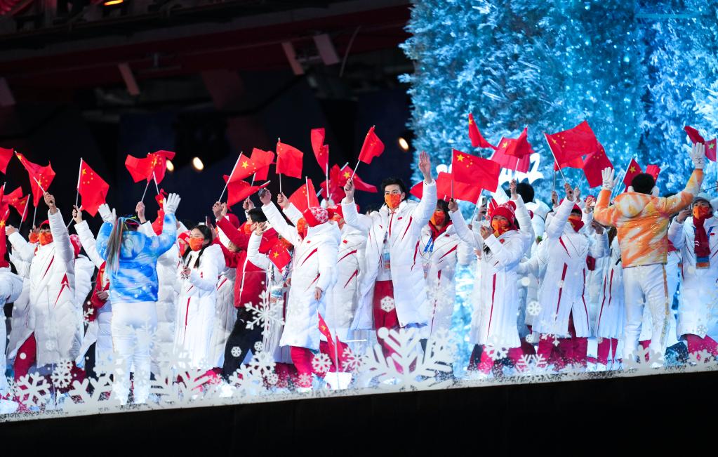 那朵從開幕式飄來的雪花,依舊輕靈而浪漫;由山區(qū)孩子演繹的《奧林匹克頌》,依然純凈動聽。當(dāng)雪花火炬臺與夢幻五環(huán)交匯,當(dāng)國際奧委會主席巴赫宣布“北京第二十四屆冬奧會閉幕”,北京冬奧會在歌聲中徐徐拉上帷幕。