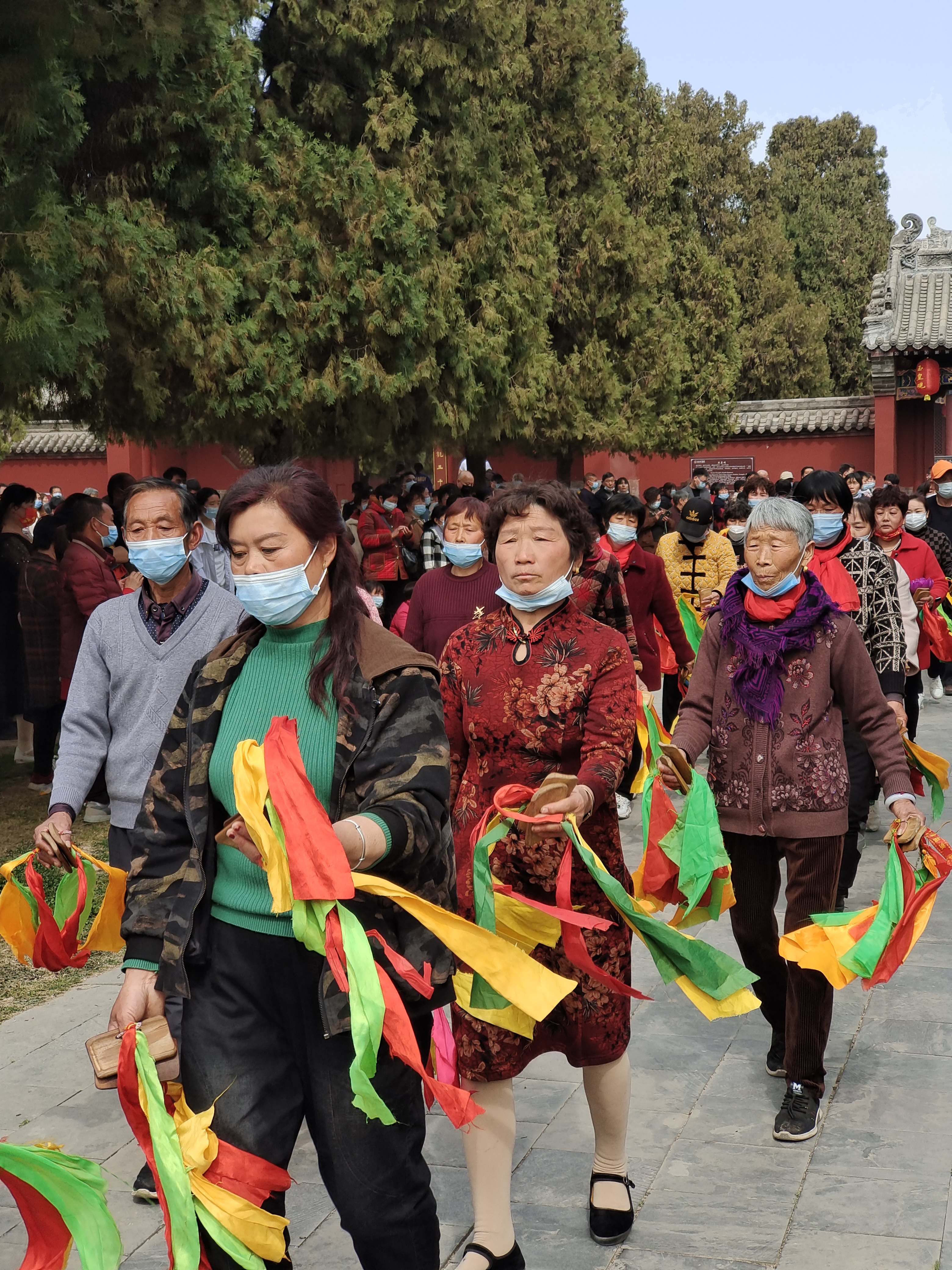 在疫情防控背景下,太昊陵中的子孫窯和岳飛觀暫時關(guān)閉。人們路過“子孫窯”時,會不自覺摸摸墻角;路過岳飛觀時,會雙手合十,帶孩子的會講岳飛的故事。變化之中,一些不變的照常進(jìn)行:往碑刻上貼硬幣,祈求好運(yùn);站在千年耳柏前,向人祖伏羲低聲訴說著心事;繞伏羲大墓一周,添一把土……在淮陽區(qū)各職能部門的努力下,這一古老又現(xiàn)代的盛會平穩(wěn)又精彩地運(yùn)行著。②5