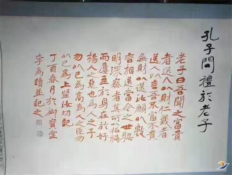 受周口市政協(xié)副主席、民盟周口市委會主委李寧委托,毛琦和民盟周口市屬六支部主委李莉代表民盟周口市委會向老子學院(博物館)捐贈了漢代畫像石《孔子問禮》拓片。